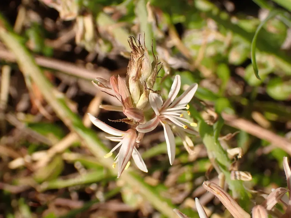 Trachyandra ciliata is a perennial, rhizomatous geophyte native to southern Africa, notable for its edible asparagus-like flower buds and spongy, straggling leaves.