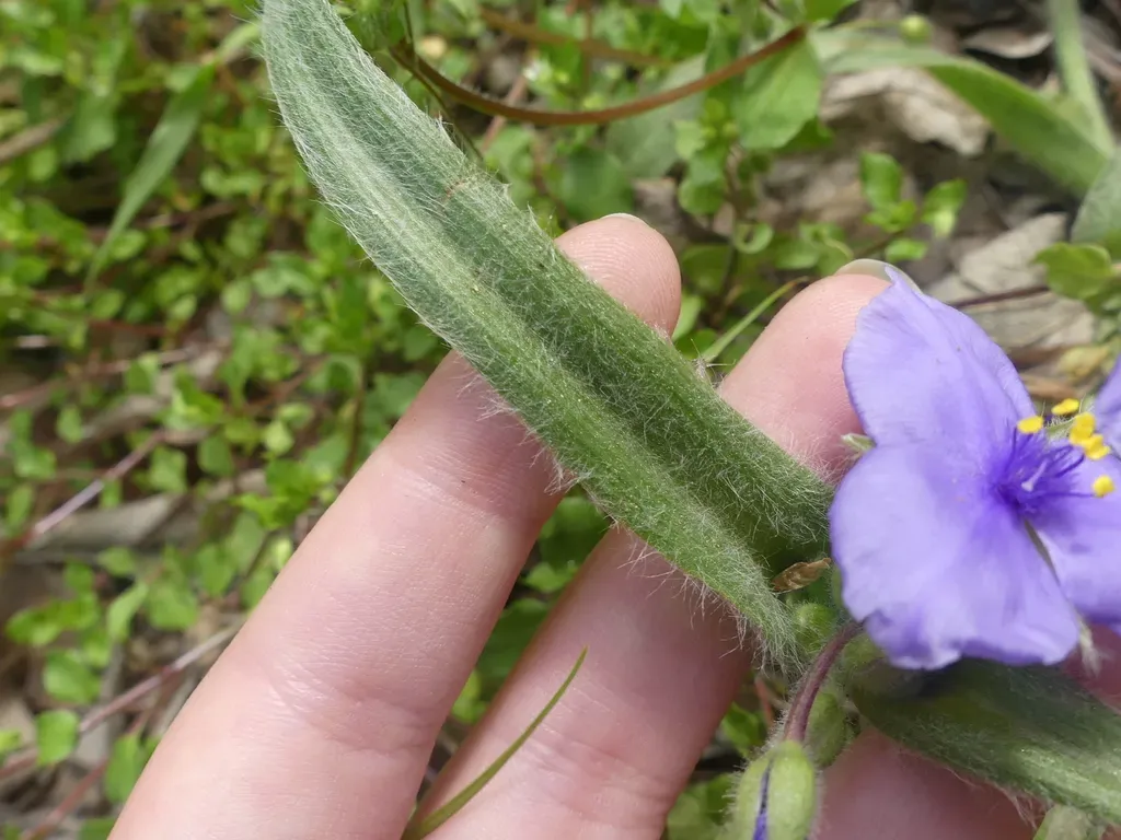 Tradescantia subacaulis, commonly known as Stemless Spiderwort, is a perennial herb native to Texas, typically found in sandy soils and open woods.