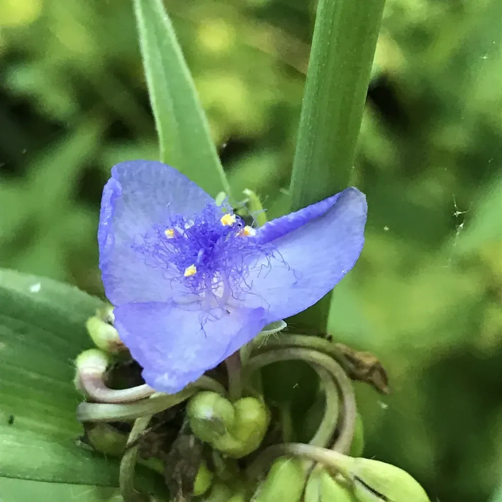 Tradescantia subaspera is a clump-forming, herbaceous perennial native to the central and eastern United States, known for its zigzag stems and blue flowers.