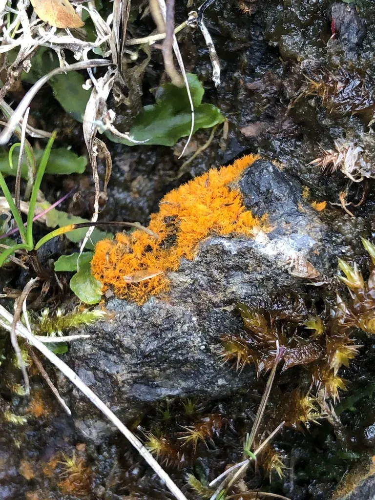 Orange Rock Hair (Trentepohlia Aurea) is a perennial other (filamentous alga) in the Trentepohliaceae family with easy care difficulty. It requires moderate watering and partial shade or dappled_shade or filtered_light light in USDA hardiness zones 7-10. This plant is safe for cats and dogs.