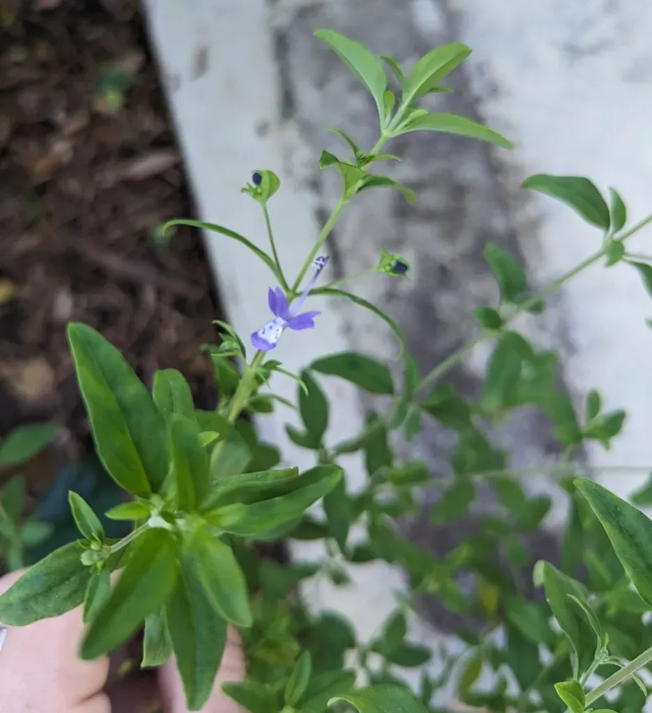Trichostema fruticosum, commonly known as Bushy Blue Curls, is a flowering plant native to the Southeastern United States, characterized by its distinctive blue flowers and shrubby growth habit.