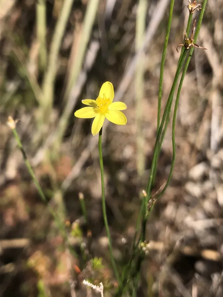 Tricoryne elatior is a rhizomatous perennial herb native to Australia, known for its wiry, slender stems and yellow flowers.