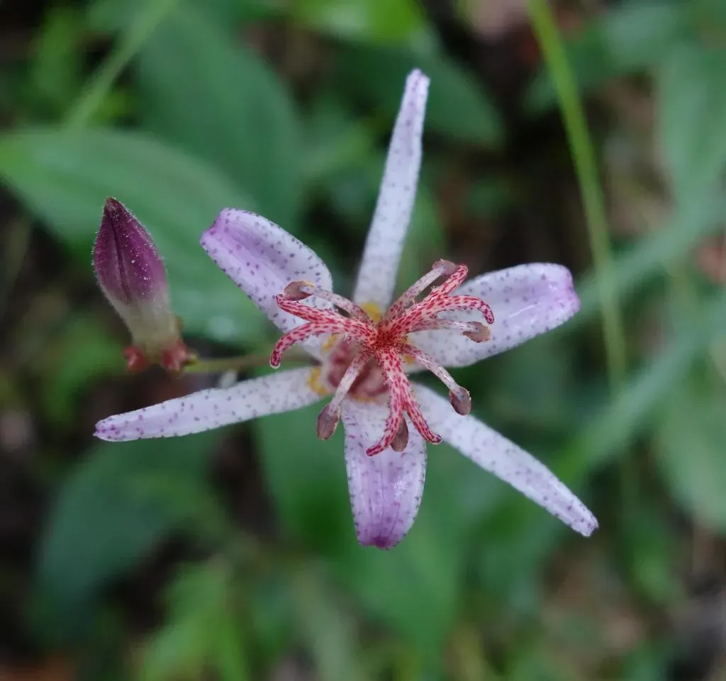 Formosan Toad Lily (Tricyrtis Formosana) is a perennial herb in the Liliaceae family with moderate care difficulty. It requires moderate watering and partial shade or full shade light in USDA hardiness zones 4-8. This plant is safe for cats and dogs. It can be grown indoors.