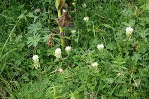 Trifolium ochroleucon is a clumping, herbaceous perennial plant known for its creamy-yellow flowers and trifoliate leaves.