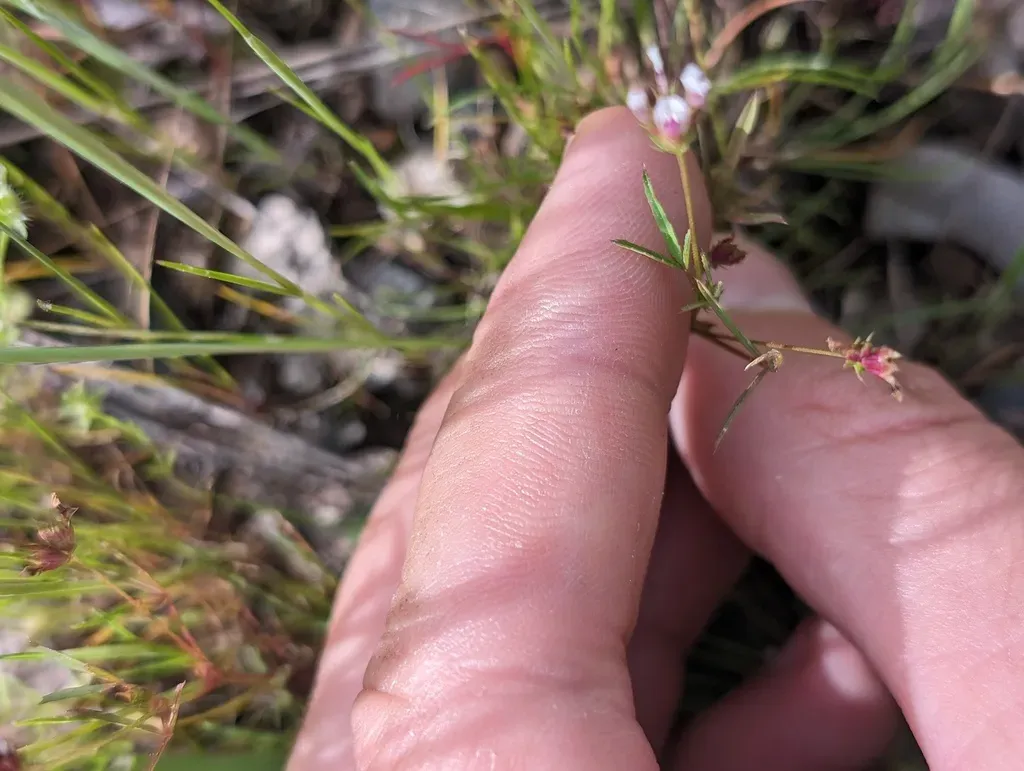 Few-flowered Clover (Trifolium Oliganthum) is a annual herb in the Fabaceae family with easy care difficulty. It requires moderate watering and full sun or partial shade light in USDA hardiness zones 7-10. This plant is safe for cats and dogs.