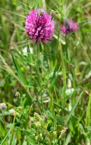 Trifolium purpureum, commonly known as purple clover, is a perennial herbaceous plant in the Fabaceae family, recognized for its vibrant purple to pinkish-red flower heads and compound leaves.