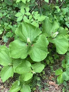 Giant White Wakerobin (Trillium Albidum) is a perennial herb in the Melanthiaceae family with moderate care difficulty. It requires moderate watering and partial shade or dappled_shade light in USDA hardiness zones 5-8. This plant is toxic to cats and dogs — keep it out of reach of pets.