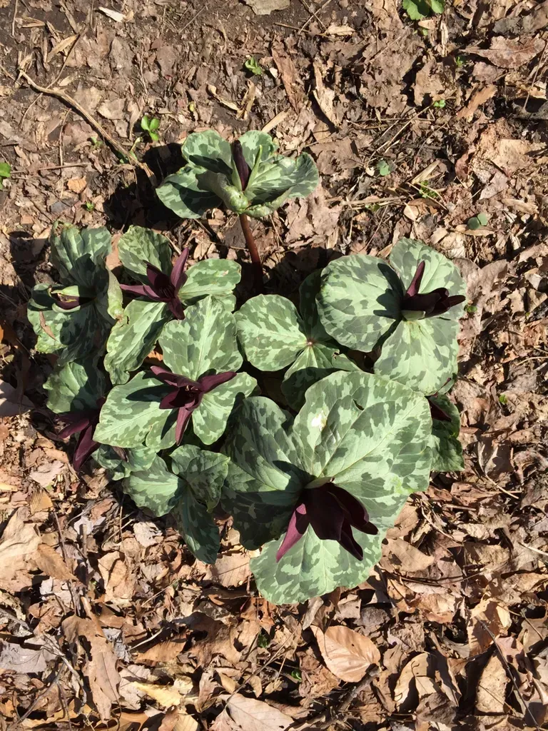 Trillium cuneatum is a perennial herbaceous wildflower native to the southeastern United States, known for its large mottled flowers and distinctive three-petaled blooms.