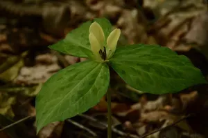 Trillium discolor, commonly known as mottled wakerobin or pale yellow toadshade, is a perennial flowering plant native to the southeastern United States, noted for its distinctive mottled leaves and pale yellow flowers.