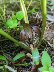 Trillium petiolatum is a perennial herbaceous plant native to the northwestern United States, known for its distinctive long-petioled leaves and dark red-brown flowers.