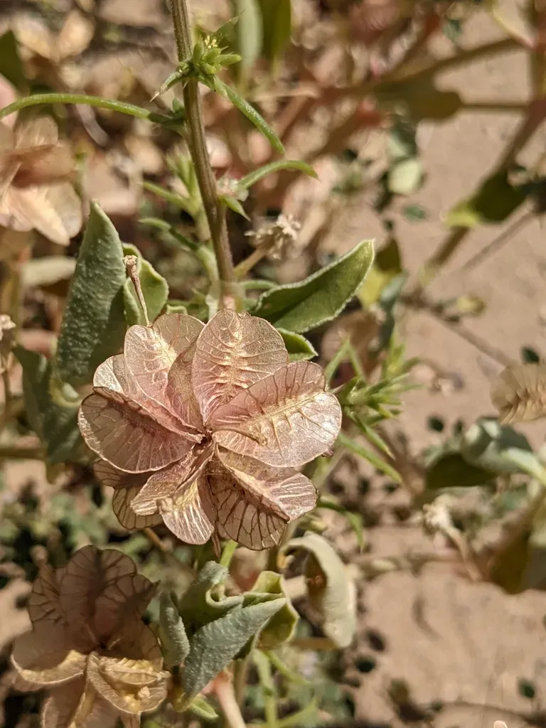 Tripterocalyx carneus is a succulent perennial herb native to arid desert environments, characterized by fleshy leaves and showy pink to magenta flowers.