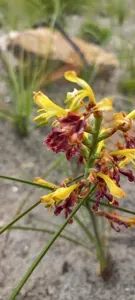 Tritoniopsis parviflora is a species of flowering plant in the Iridaceae family, endemic to the Cape Province of South Africa, notable for its sweetly spicy scented yellow flowers with brown to maroon markings.
