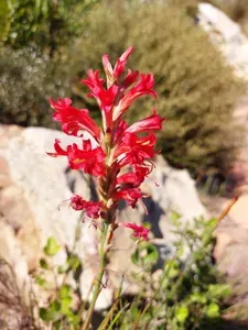 Tritoniopsis triticea is a striking unbranched cormous geophyte native to the Southwestern Cape of South Africa, growing up to 80 cm tall with narrow, three-veined leaves and dense spike-like clusters of flowers.