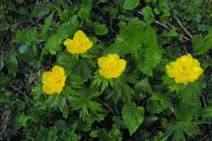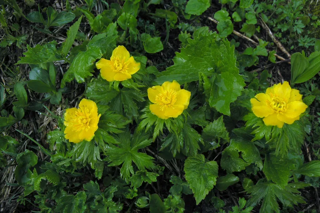 Trollius ranunculinus is a perennial herbaceous plant in the Ranunculaceae family, native to Eastern Turkey and Northwestern Iran, known for its bright yellow globular flowers.