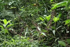 Urera nitida is a shrub or small tree native to tropical Asia and Africa, known for its stinging hairs and white flowers.