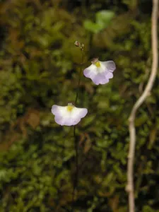 A tiny carnivorous plant of the genus Utricularia, often found growing on moist rocks or tree trunks in tropical regions.