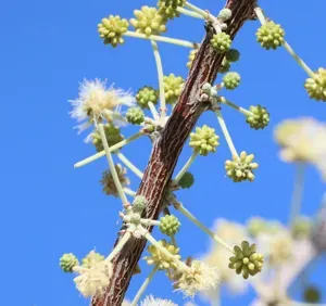 Candle Thorn (Vachellia Hebeclada) is a perennial shrub/tree in the Fabaceae family with moderate care difficulty. It requires drought-tolerant watering and full sun light in USDA hardiness zones 9-11. This plant is toxic to cats and dogs — keep it out of reach of pets.
