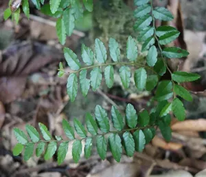 Ventilago elegans is a climbing shrub native to Taiwan, known for its sleek vines and small oval leaves.