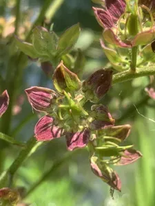 Veratrum virginicum is a tall perennial herb native to eastern North America, known for its striking white to cream-colored flowers arranged in a large panicle.