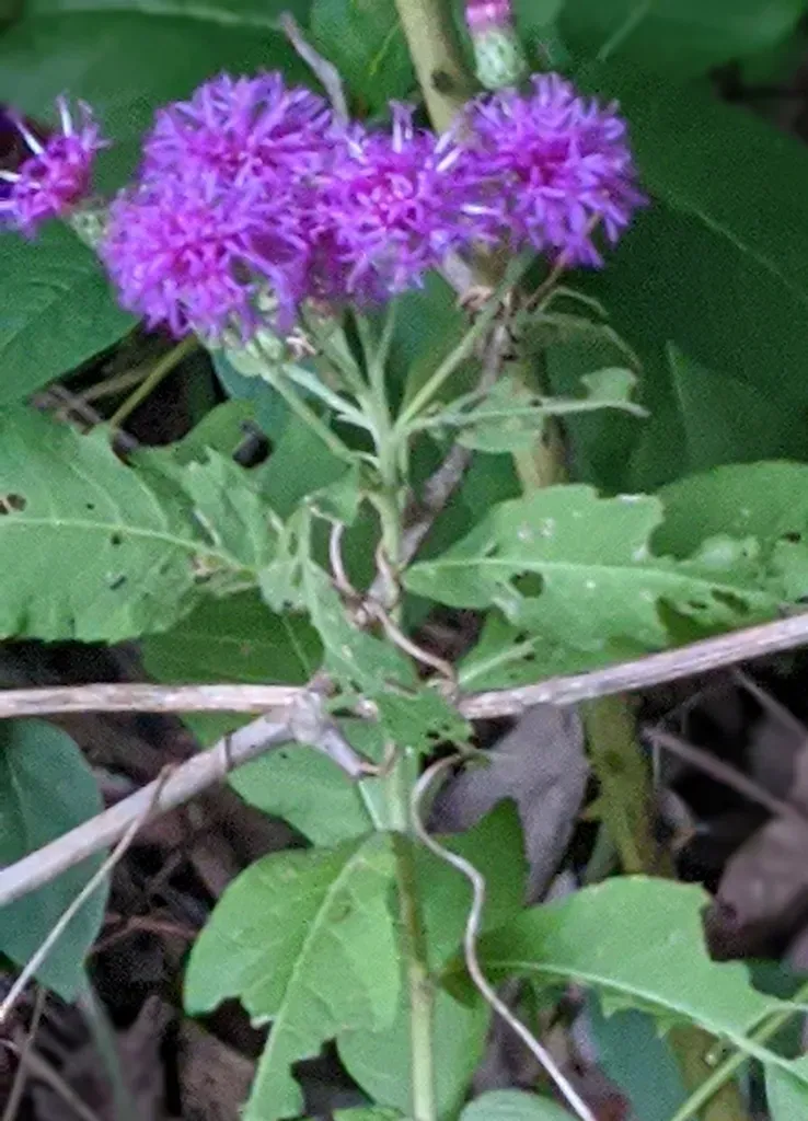 Vernonia baldwinii, commonly known as Western ironweed, is a perennial herb native to the central United States with vibrant purple flowers.