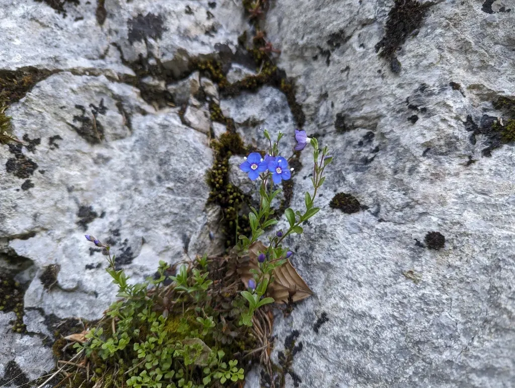 Rock Speedwell (Veronica Fruticans) is a perennial herb in the Plantaginaceae family with moderate care difficulty. It requires moderate watering and full sun or partial shade light in USDA hardiness zones 3-7. This plant is safe for cats and dogs.