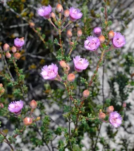 Plumed Featherflower (Verticordia Plumosa) is a plant in the Myrtaceae family with moderate care difficulty. It requires moderate watering and moderate light.