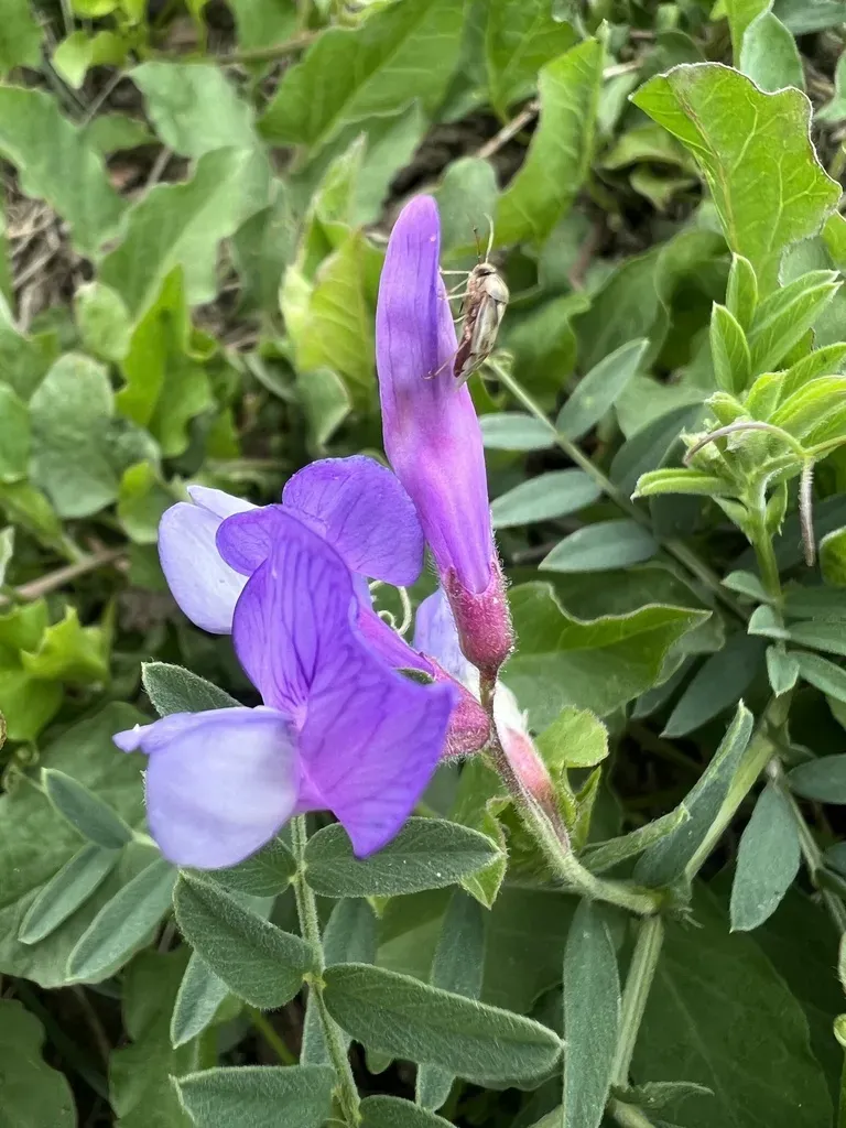 American Vetch (Vicia Americana) is a perennial herb in the Fabaceae family with easy care difficulty. It requires moderate watering and full sun or partial shade light in USDA hardiness zones 3-9. This plant is toxic to cats and dogs — keep it out of reach of pets.