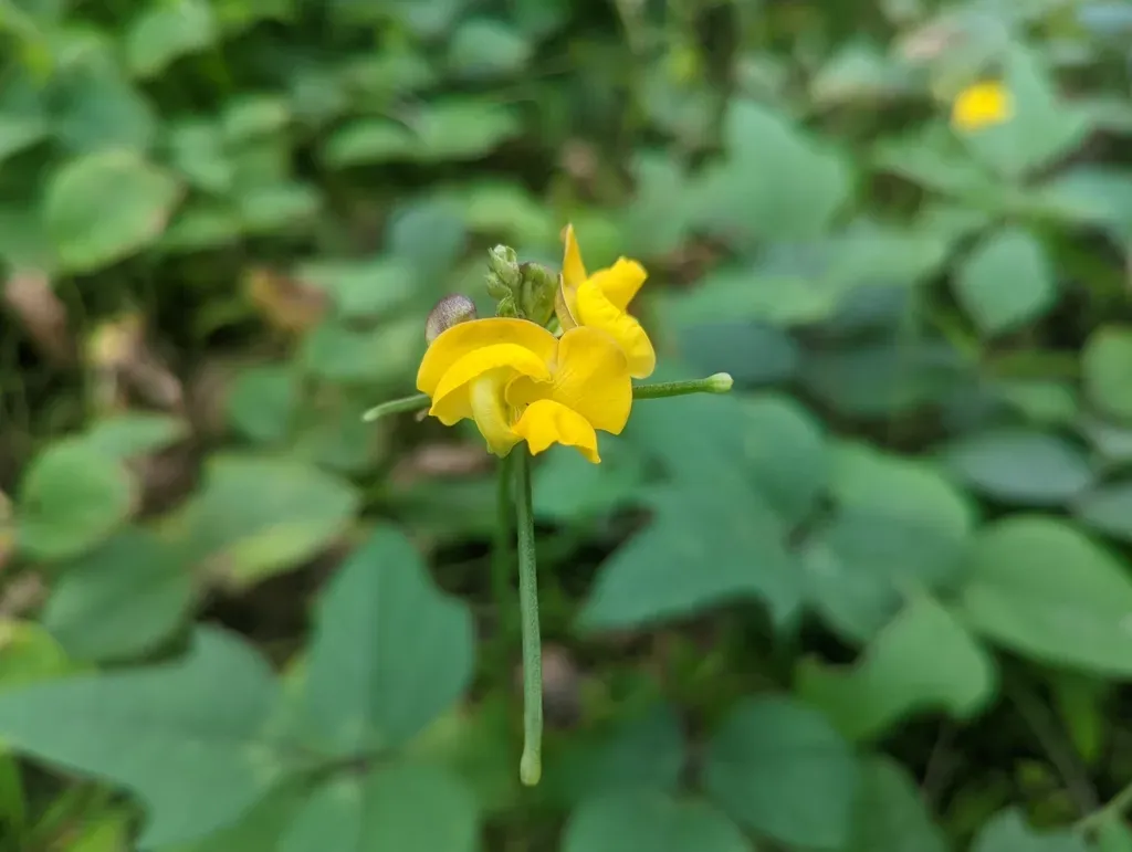 Vigna reflexopilosa is an annual or perennial herbaceous plant known for its distinctive reflexed yellow hairs on stems and leaves, native to parts of Asia and the Pacific.