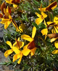 Viola douglasii is a perennial herb native to California and western North America, known for its distinctive golden yellow flowers with dark brown backs and veins.