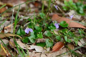 Viola grypoceras is a perennial herbaceous plant known for its small size and blue to lavender flowers.