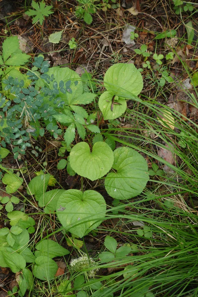 Viola mirabilis is a herbaceous perennial plant native to temperate Eurasia, known for its basal rosette of heart-shaped leaves and small violet flowers.