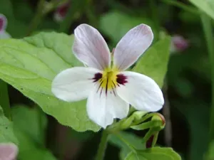 Pinto Violet (Viola Ocellata) is a perennial herb in the Violaceae family with easy care difficulty. It requires moderate watering and partial shade or full shade light in USDA hardiness zones 7-9. This plant is safe for cats and dogs.