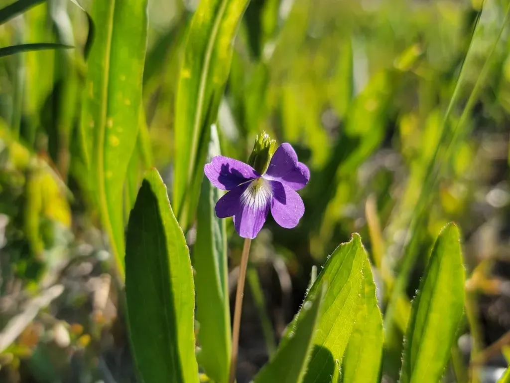 Viola sagittata is a perennial violet known for its distinctive arrow-shaped leaves and blue to purple flowers.