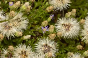 Purple Fuzzweed (Vittadinia Gracilis) is a perennial herb in the Asteraceae family with easy care difficulty. It requires low watering and full sun or partial shade light in USDA hardiness zones 8-11. This plant is safe for cats and dogs.