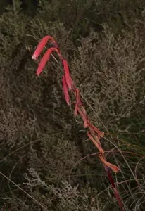 Watsonia aletroides is a tuberous perennial plant native to South Africa, known for its tall spikes of tubular, coral-red to pink flowers and sword-shaped leaves.