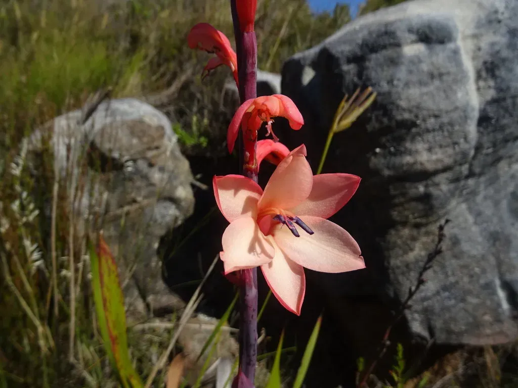 Watsonia meriana is a perennial flowering herb in the Iridaceae family, native to southern Africa and known for its tall, gladiolus-like flower spikes and production of bulbils.