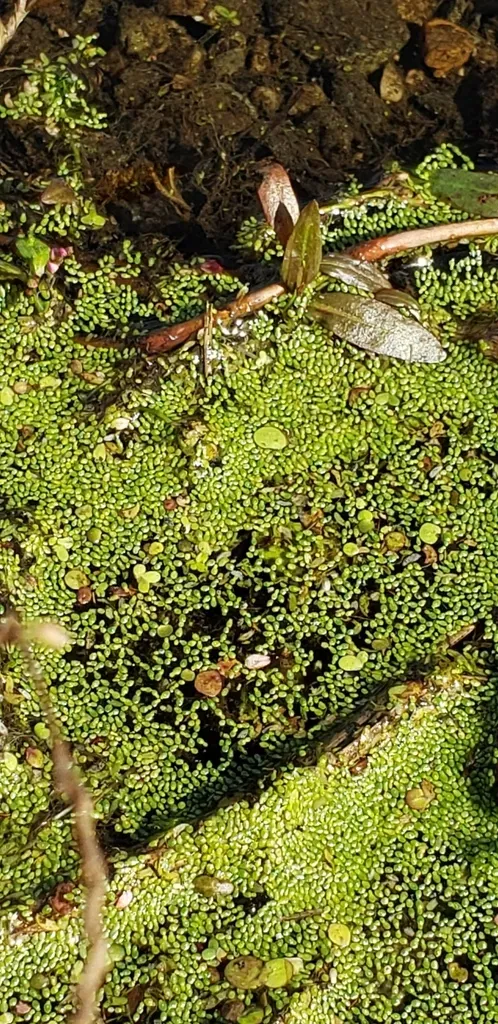 Wolffia brasiliensis is a tiny, floating, rootless aquatic plant native to the Americas, known for its extremely small size and simple structure.