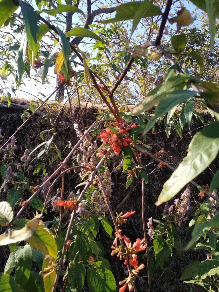Woodfordia fruticosa is a large, deciduous shrub known for its bright red flowers and medicinal properties.