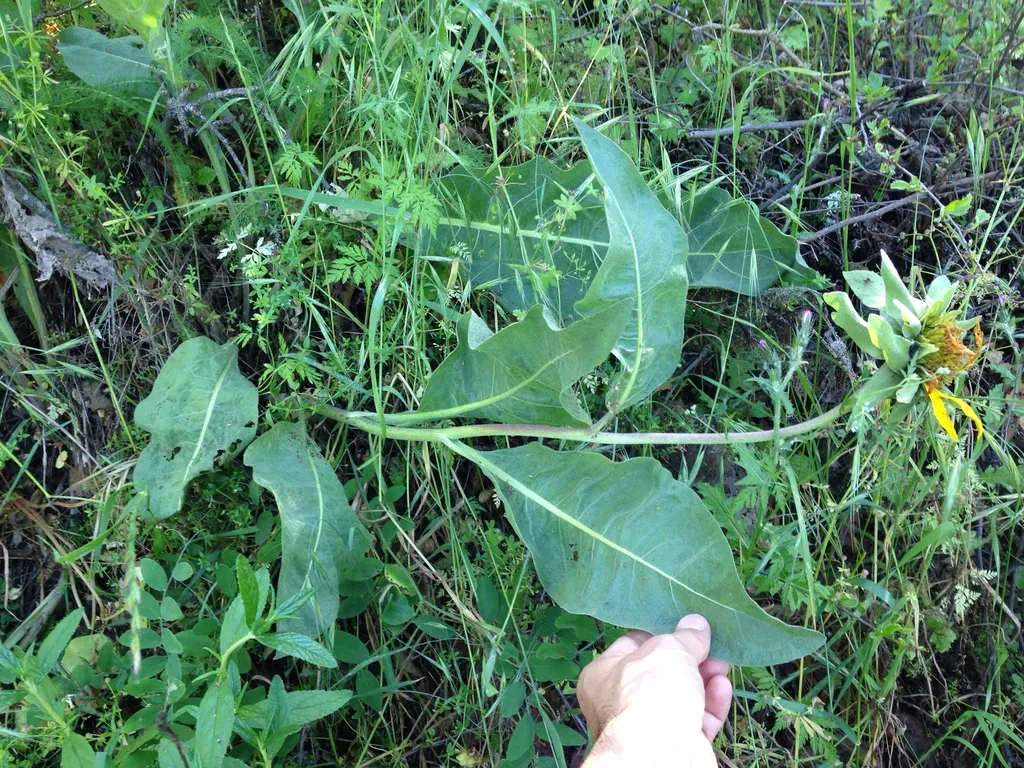 Wyethia glabra is a perennial herb native and endemic to California, known for its sunflower-like yellow flowers and lance-shaped leaves.