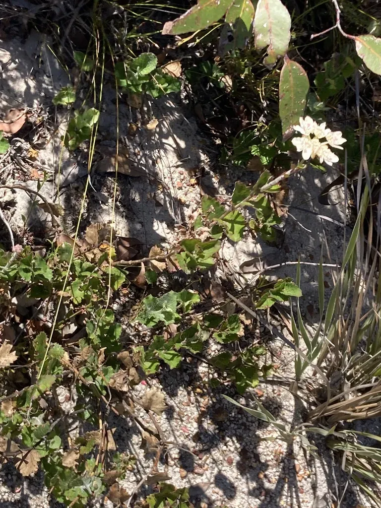 Xanthosia rotundifolia, commonly known as Southern Cross, is a small shrub native to southwestern Australia, noted for its distinctive white or cream flowers and oval-shaped serrated leaves.