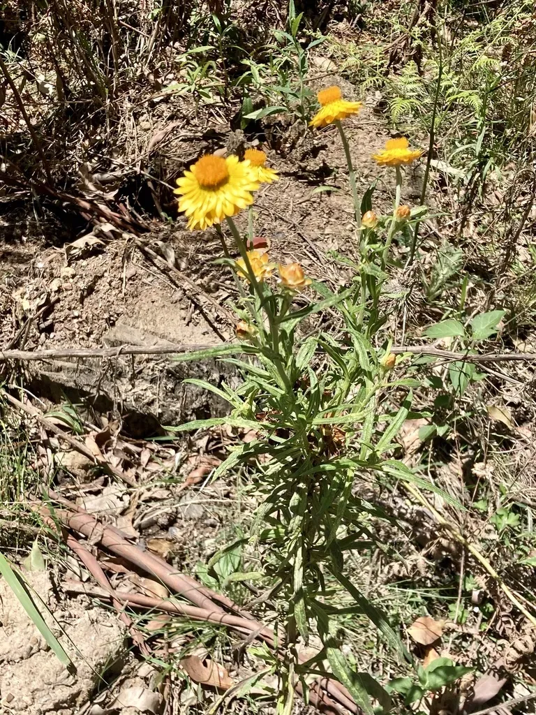 Xerochrysum bracteatum is a flowering plant native to Australia, known for its papery, colorful flowers that are often used in dried floral arrangements.