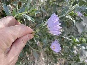 Mecca-aster (Xylorhiza Cognata) is a perennial shrub in the Asteraceae family with moderate care difficulty. It requires low watering and full sun light in USDA hardiness zones 8-10. This plant is safe for cats and dogs.