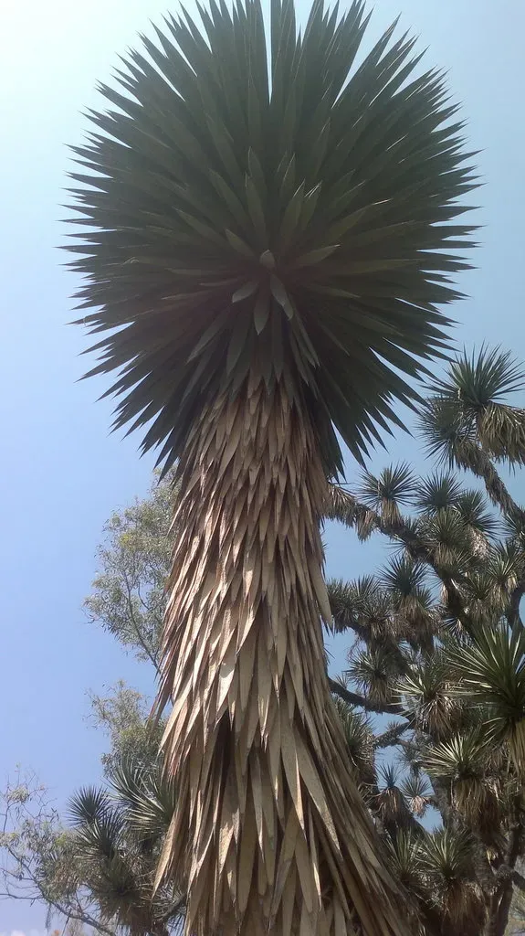 Yucca filifera is an evergreen tree native to central Mexico, known for its tall stature and long, sword-shaped leaves with thread-like fibers along the margins.