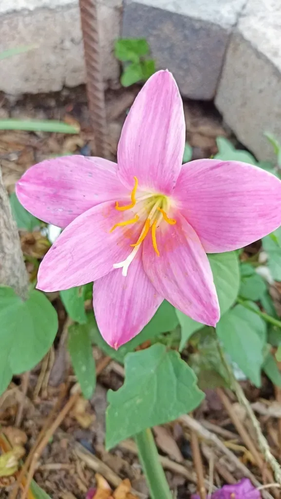 Zephyranthes carinata is a perennial flowering plant known for its large, showy pink flowers and grass-like foliage.