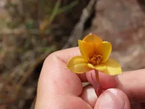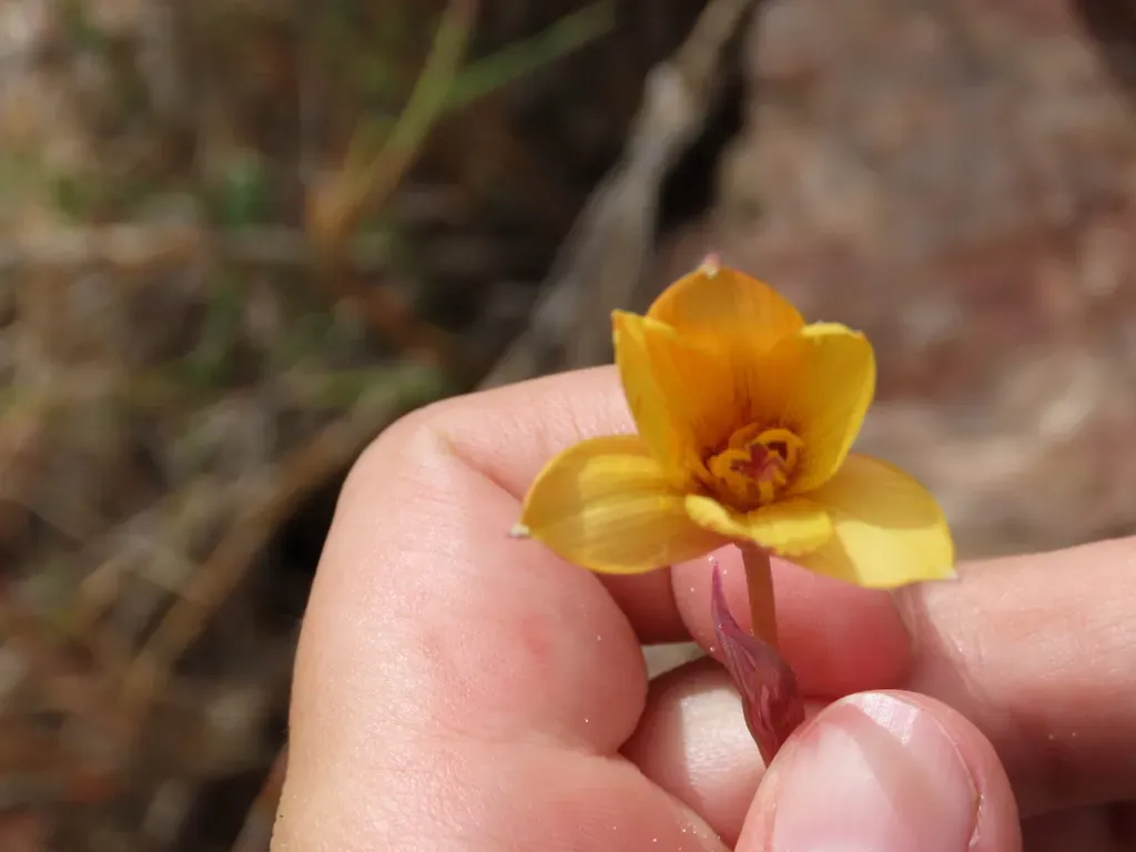 Zephyranthes tubispatha is a perennial bulbous plant native to southern South America, known for its striking copper, bronze, and yellow flowers.