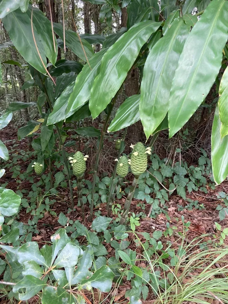 Zingiber zerumbet is a rhizomatous, clump-forming perennial ginger native to tropical Asia, known for its distinctive pinecone-shaped flower heads and medicinal properties.
